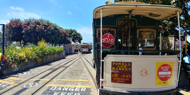 San Francisco heeft drie cable car-lijnen: Powell-Hyde, Powell-Mason en California. De eerste twee nemen je mee van Market Street richting Fisherman’s Wharf en worden gezien als de meest toeristische en idyllische routes. Daar willen dan ook de meeste mensen gebruik van maken. De California-lijn wordt daarentegen door iedereen vergeten. Oké, aan het eindpunt Van Ness heb je geen luidruchtige en stinkende zeeleeuwen of andere bezienswaardigheden, maar je hoeft dan ook geen minuut langer dan nodig te wachten tot je op het enige nog rijdende monument van Amerika zit. De California-lijn begint op de hoek Market Street/Drumm Street/California Street, in de buurt van de Ferry Building, en loopt door Chinatown, over Nob Hill naar Van Ness Avenue. Toch genoeg te zien, lijkt me...